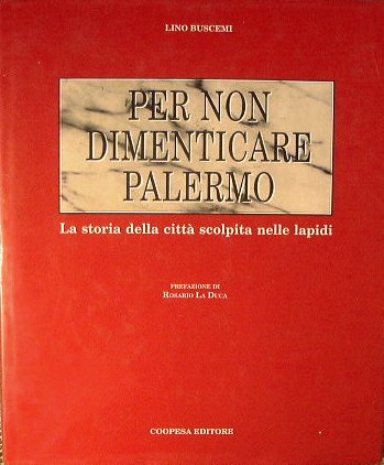 La storia della città scolpita nelle lapidi - Prefazione di Rosario La Duca - Presentazioni di Claudio Martelli, Rino Nicolosi, Leoluca Orlando - in 4° - pp.362 - Tela con sovracopertina - Fotografie di Nino di Buono
