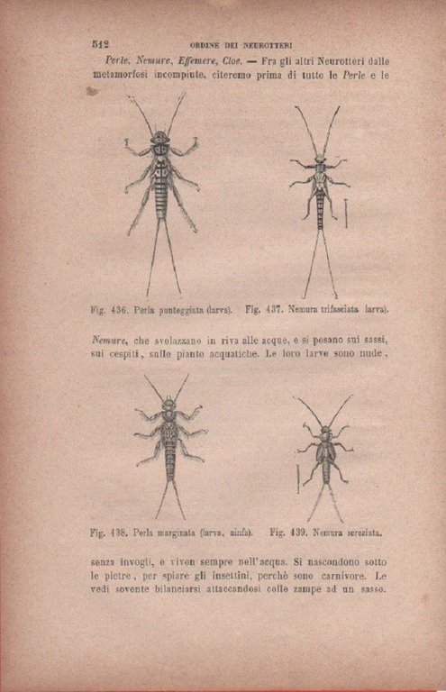 Perla punteggiata; Nemura trifasciata; Nemura screziata. Vecchia stampa