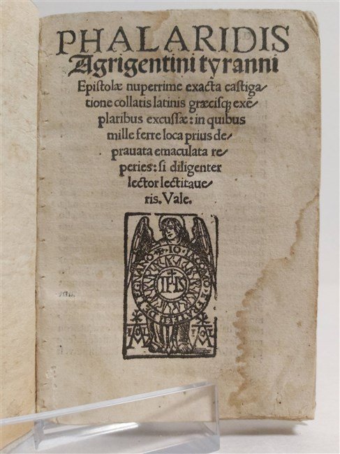 PHALARIDIS AGRIGENTINI TYRANNI Epistolae nuperrime exacta castigatione collatis latinis graecibusq. exeplaribus excusse: in quibus mille ferre loca prius depravata emaculata reperies: si diligenter lector lectitaveris.