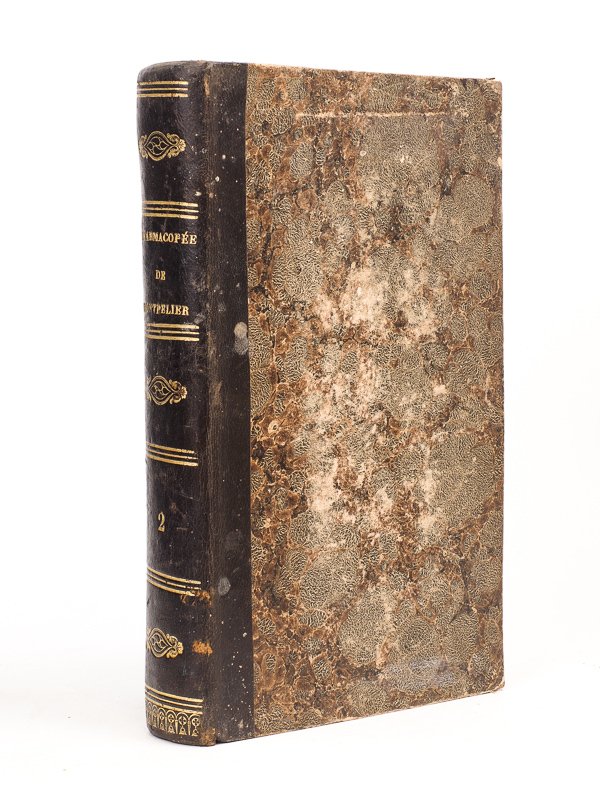 Pharmacopée de Montpellier ou Traité spécial de la Pharmacie, dans lequel on s'occupe des préparations pharamceutiques, en les considérant au point de vue scientifique ou philosophique, et au point de vue manuel ou pratique, et dans lequel on fait ressortir tout ce qui se rattache à l'art de rendre les médicaments agréables ; terminé par un formulaire non répugnants et agréables, 1 vol. in-8 relié demi-basane noire, Chez l'Auteur, Montpellier, Chez M. J.-B. Baillière, Paris, 1846, 851 pp. Deuxième volume seul. Etat satisfaisant (dos frotté avec petits accrocs, rouss.). Rare. L'auteur occupait la chaire de pharmacie à la Faculté de Montpellier, depuis 1837.