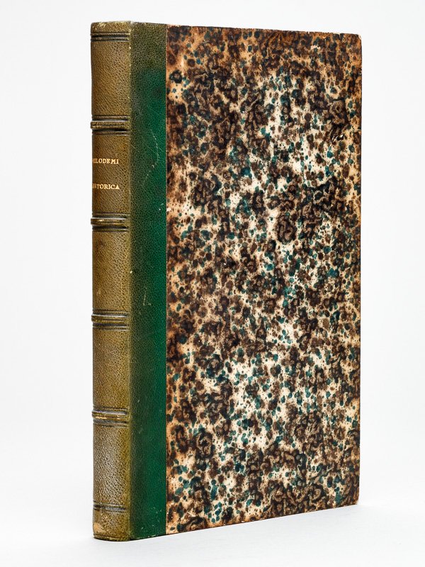 1 vol. in-8 reliure demi-chagrin vert, dos à 4 nerfs, Excudebant Firmin Didot Fratres [ Firmin Didot Frères ], Paris, 1840, 3 ff., cxxxii pp., 5 ff. (dont 4 planches reproduisant les fragments), 246 pp. et 1 f. Titre complet : Philodemi Rhetorica ex Herculanei Papyro lithographice oxonii excusa Restituit latine vertit Dissertatione De graeca Eloquentia et Rhetorica notitiaque De Herculanensibus voluminibus auxit annotaionubus indicibusque instruxit E. Gros adjecti sunt Duo Philodemi Libri De Rhetorica Neapoli editi. Bon état pour cette rare édition des fragments de la Rhétorique de Philodème découverts à Herculanum (très petite restauration ancienne à un accroc sans mq. à 2 ff., qq. rouss.). Texte grec avec traduction latine en regard.