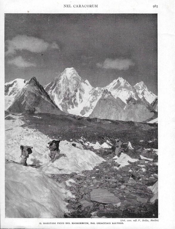 Picco del Masherbrum dal Ghiacciaio Baltoro. Stampa 1928