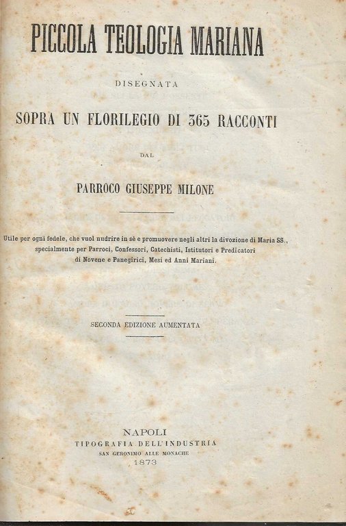 piccola teologia mariana disegnata sopra un florilegio di 365 racconti dal parroco giuseppe milone