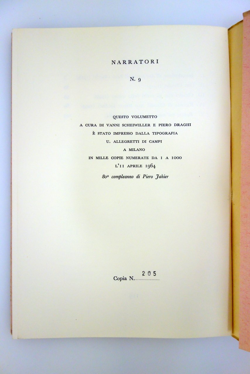 Tiratura numerata di 1000 copie, in occasione dell' 80° di Piero Jahier, n/s 205.