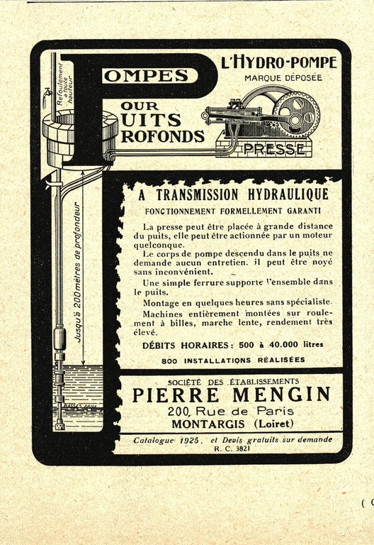 Pierre Mengin. Pompes pour puits profonds. Advertising 1926