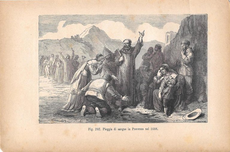 Pioggia di sangue in Provenza nel 1608. Stampa 1893