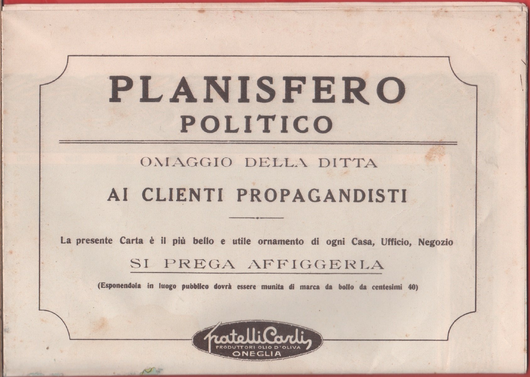 Planisfero politico 1932. Fratelli Carli Oneglia