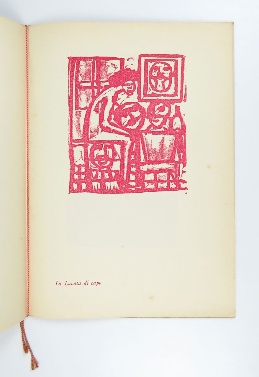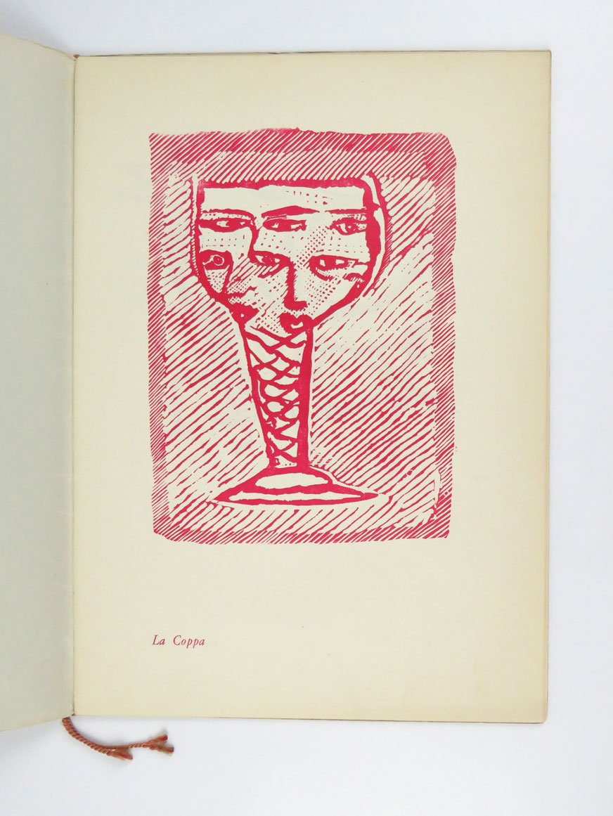 LIBROPrima edizione.Esemplare parzialmente intonso, in ottimo stato di conservazione.Versione monocolore in formato “piccolo” (35 cm di altezza) della suite di dodici incisioni titolate in basso a sinistra, che prende il titolo dalla terzultima della serie, eponima. Rarissima, è censita in un solo esemplare secondo ICCU, quello del fondo Scheiwiller ad APICE Milano. Si tratta di una delle cartelle che tra gli anni sessanta e settanta «furono stampate dall’artista eseguendone direttamente la tiratura nel suo studio in via del Leoncino che, aperto nel 1962, divenne presto punto di incontro per amici e collezionisti e luogo di nascita di riviste, almanacchi, fogli volanti e sodalizi, come l’Associazione amatori d’arte o la Inchiostri associati» Bibl.: (Francesca Franco, «Maccari», voce del «Dizionario Biografico degli Italiani» volume 66, 2006: che seguiamo anche per la datazione presunta).