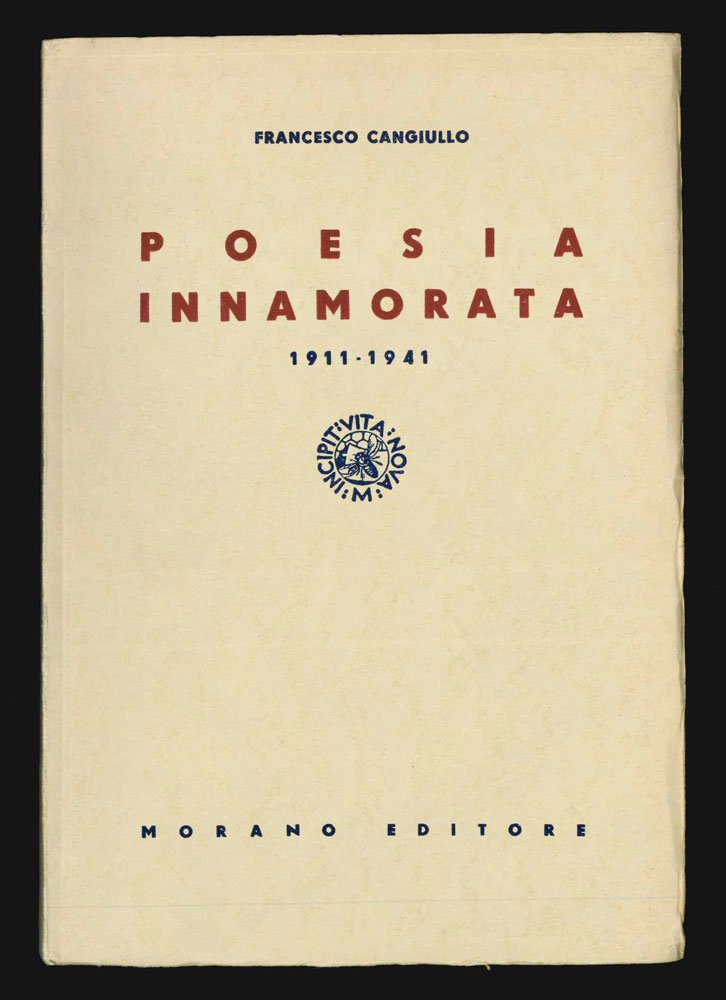 LIBRO Prima edizione, seconda emissione. Ottimo esemplare, squadrato e a fogli chiusi (leggere fioriture dovute alla qualità della carta), completo di “prière d'insérer” editoriale stampato in blu con foto dell’autore. La più ampia raccolta del Cangiullo lirico mai pubblicata uscì presso Morano di Napoli nel maggio 1943, con una copertina color crema; fu ricopertinata dallo stesso editore nell’immediato dopoguerra in stile analogo ma su carta grigio chiarissimo e con piccole varianti tra le quali le date «1911-1941» nel sottotitolo (presente esemplare). Contiene «poesie tratte da “Le Cocottesche”; da le poesie pubblicate in “Lacerba”; da “Il debutto del sole”; “Il Golfo di Napoli”; dai poemi “Capri ed Amalfi”; “Andare” (finale di “Ninì Champagne”). Con una sezione di poesie inedite o edite solo su giornali e riviste, e le due raccolte inedite “Un giorno a Capri” (1939) e “Poesie a Titina”. Questa è la prima emissione con copertina in brossura color crema e date «1911-1940». Fu ricopertinata dallo stesso editore Morano nell’immediato dopoguerra in stile analogo ma su carta grigio chiarissimo e con piccole varianti tra le quali le date «1911-1941». Cammarota, Futurismo, 76.34; Id., Bibliografia di Francesco Cangiullo, n. 666