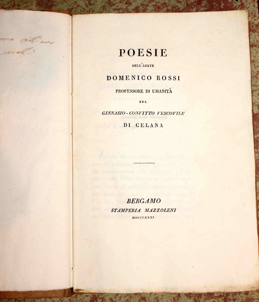 Poesie dell'abate Domenico Rossi professore di umanità nel ginnasio-convitto vescovile di Celana