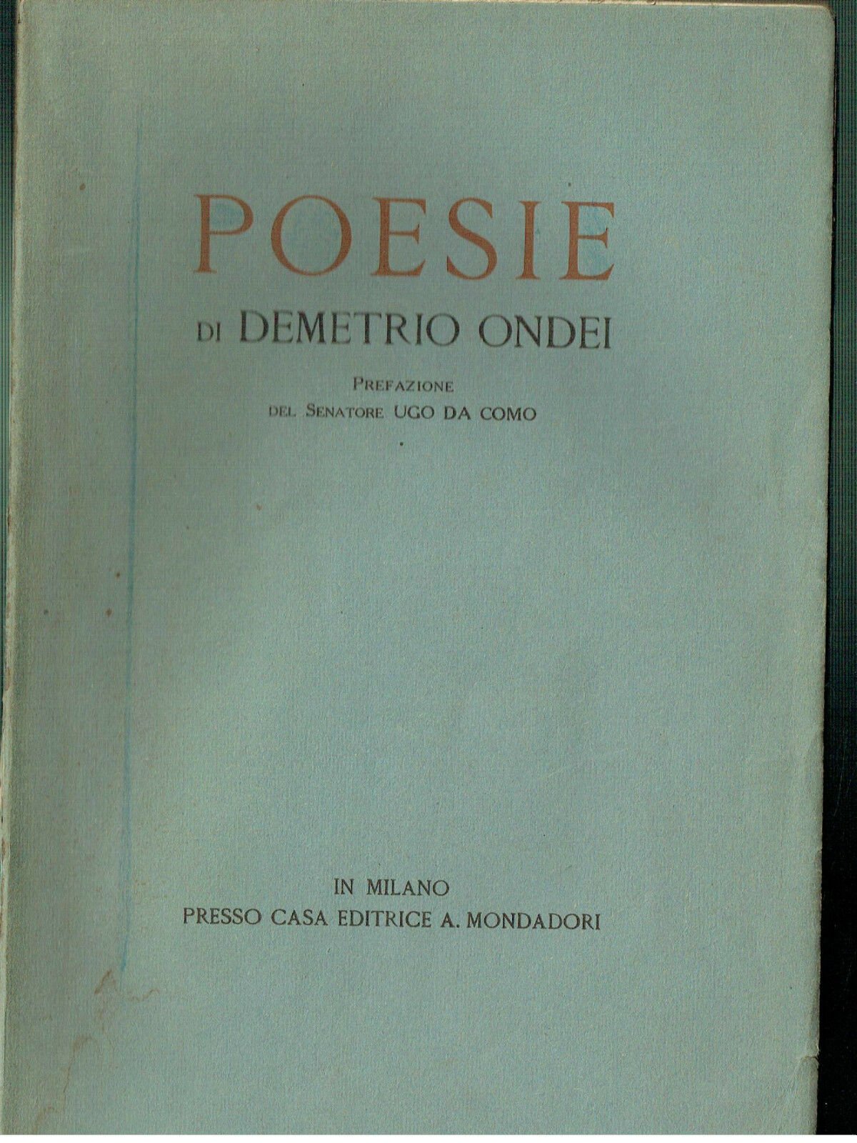 Poesie Di Demetrio Ondei**Prefazione Del Senatore Ugo Da Como**Mondadori 1924. Pp. 324+. Cm 25 X 17.5. In Brossura Editoriale In Buone Condizionirif. libr.: letteratura tutti i volumi sono usati la foto corrisponde alla realtà ***************************************************************�