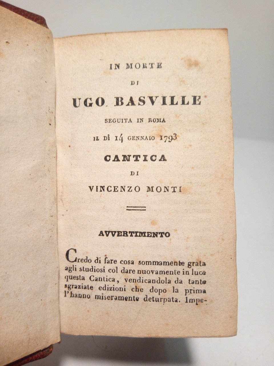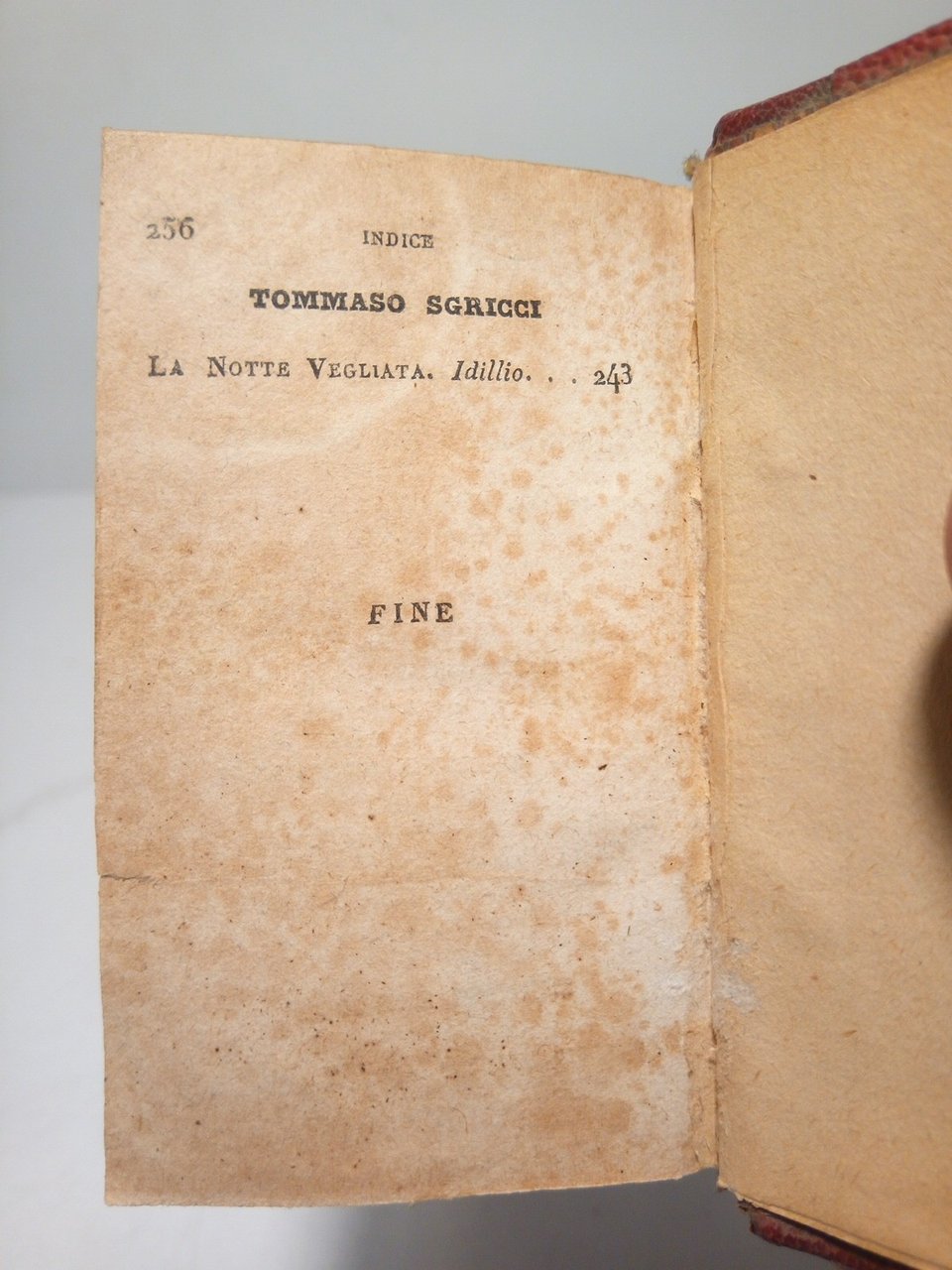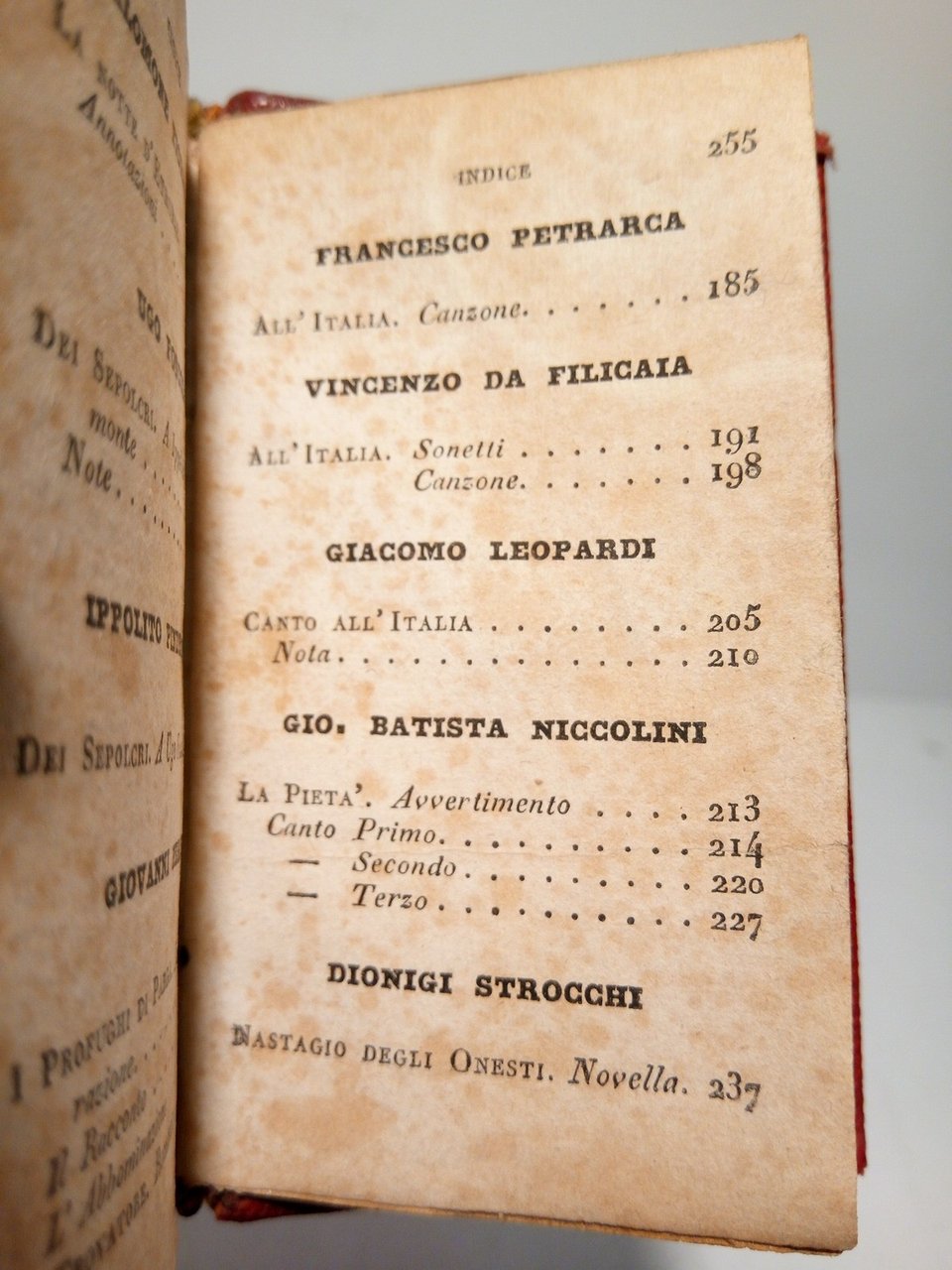 Edizione Quarta accresciuta.- Firenze: [s.n.] A spese dell' editore [sin impresor], 1837.- 2 Partes en un solo Tomo (224 p.; 256 p.); 16avo. (9,2 x 6 cm); Enc. finamente en media piel chagrén, lomo dorado.- RARO.* Las 5 últimas hojas con motitas de óxido. Por lo demás en muy buen estado. LITERATURA Y ESTUDIOS LITERARIOS EXTRANJEROS DE LOS SIGLOS XVI-XXI