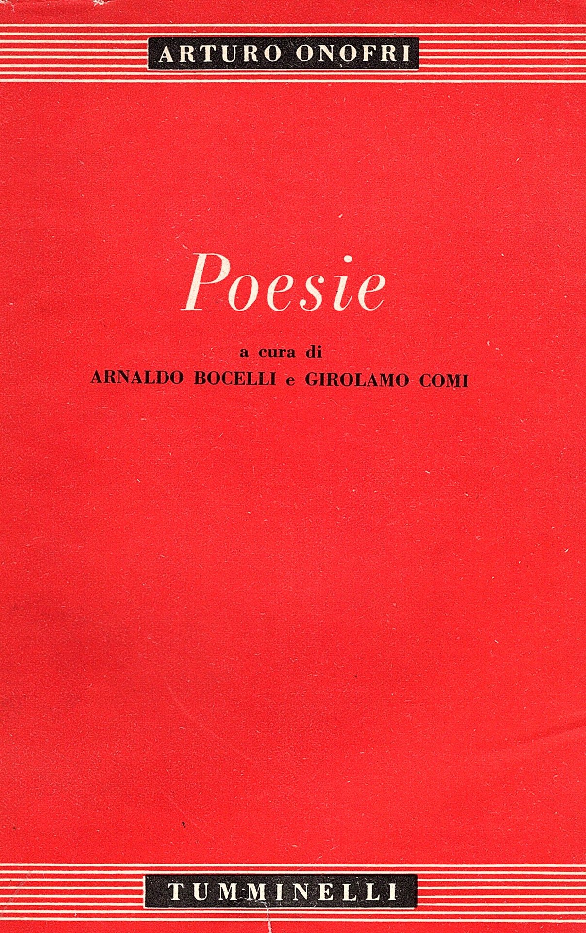 In-16° (19.5x12 cm), pp. XXXII, 153, (3), brossura editoriale rossa con tioli in nero e bianco al dorso e al piatto anteriore, sovracoperta gemella con alette paratestuali. Nuova biblioteca italiana diretta da Arnaldo Bocelli, 33, Poesia. Minimi difetti alla sovracoperta ma più che buon esemplare entro velina. Edizione originale di questo florilegio poetico onofriano con utile introduzione delineante il retroterra filosofico-sapienziale della sua poetica. Cfr. Gambetti-Vezzosi, p. 601.