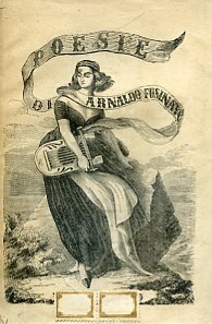 2 voll. in-16°, pp.(4), 176; (4), 160; brossura editoriale illustrata in xilografia con figura di una giovinetta che sorregge una lira. Illustrazioni xilografiche f.t. di carattere popolare. Restauri al dorso del secondo vol. Timbro a secco di privato possesso al titolo del primo vol. Bell'esemplare in barbe. I volumi presentano la stessa brossura e hanno caratteristiche tipografiche identiche, ma il primo è edito a Lugano senza note tipografiche ed il secondo dal Carrara di Milano. Il Fusinato (Schio, 1817-Verona, 1888), oltre a essere poeta di ispirazione patriotica, partecipò in prima persona a talune campagne risorgimentali, come la guerra del 1848 e la difesa di Venezia; la facilità della sua vena lirica gli valse a lungo larga popolarità e, insieme alla moglie Erminia Fuà, anch'ella poetessa, esercitò vasta influenza sulla poesia patriotica dell'Ottocento italiano. Cfr. Tiziana Momigliano in Dizionario Bompiani delle Opere, V, 631.