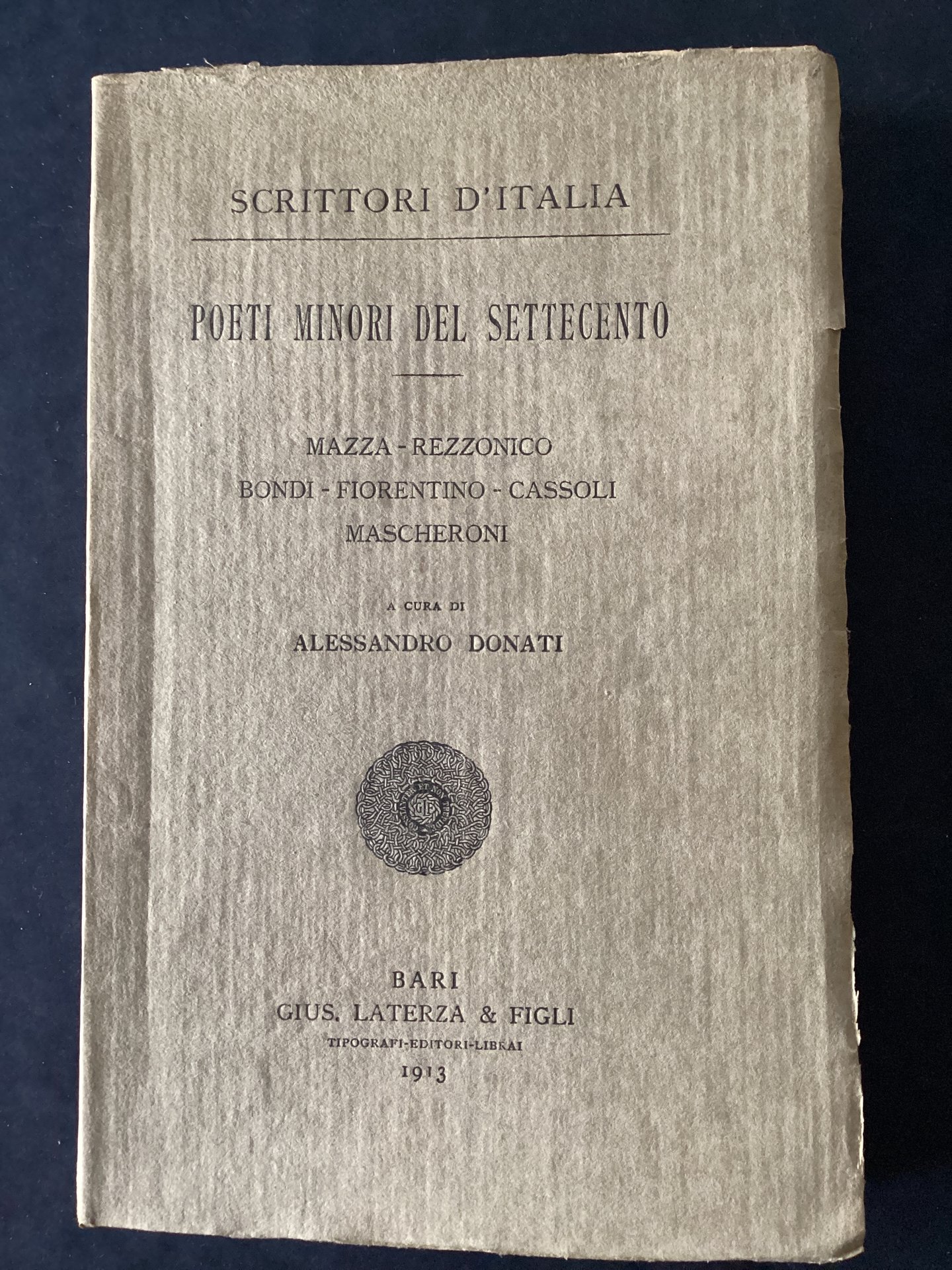 Poeti minori del Settecento. Vol. II. Mazza-Rezzonico-Bondi-Fiorentino-Cassoli-Mascheroni.