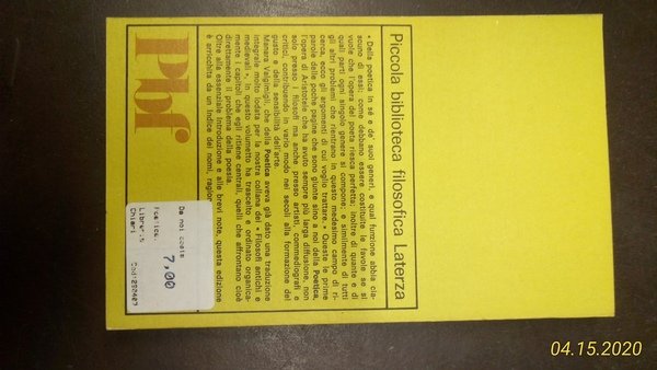 A cura di Manara Valgimigli. Bari, Laterza Ed. 1968, cm.11x18, pp.130, brossura. Coll.Piccola Biblioteca Filosofica,6. STATO: USATO, MOLTO BUONO.