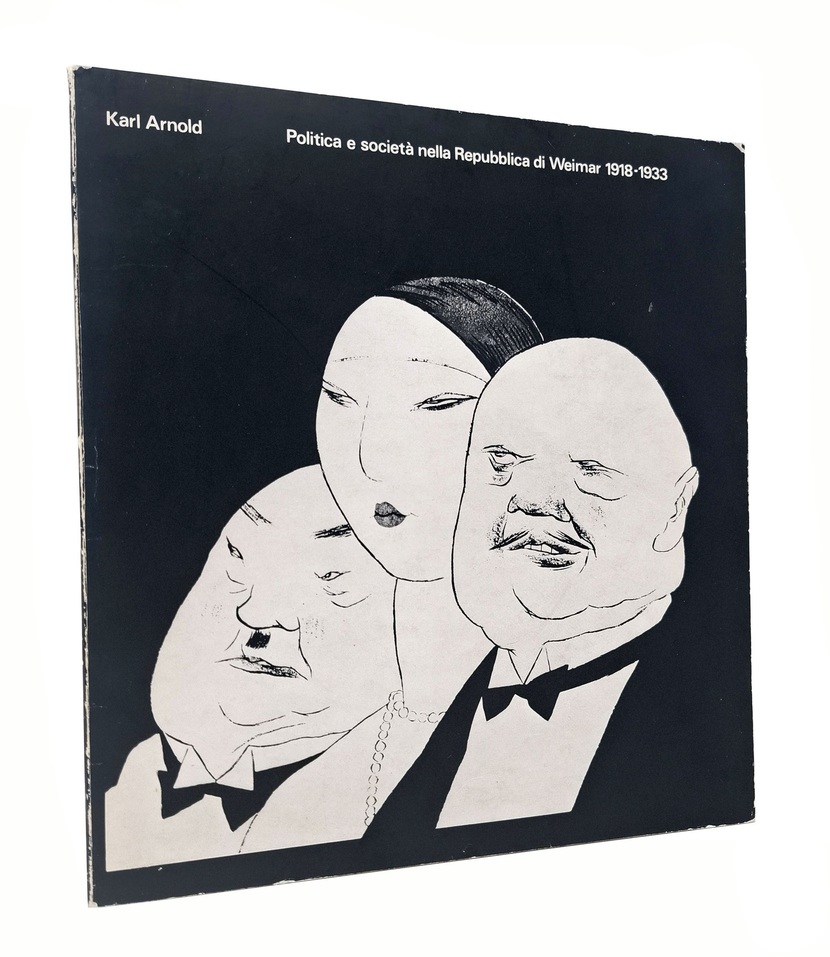 Catalogo della mostra, organizzata a cura della Provincia di Torino, dedicata ai disegni realizzati tra il 1918 e il 1933 da Karl Arnold. 'Dal 1918 al 1933 Karl Arnold pubblicò ogni settimana nella rivista satirica 'Simplicissimus' un disegno caricaturale di propria ideazione, del quale egli stesso concepiva il testo. Tra più di settecento disegni ne sono stati scelti, per questa mostra, settantaquattro, che rivelano chiaramente la maestria artistica di Karl Arnold e offrono nello stesso tempo un'immagine dell'epoca di Weimar, la prima repubblica tedesca, che ebbe una durata di soli quattordici anni'. Pagine: 76. Formato: 21 x 23 cm circa. Stato di conservazione: leggere scoloriture sui bordi della copertina ma, nel complesso, un esemplare decisamente buono. Copertina editoriale flessibile, illustrata con uno dei disegni di Karl Arnold.