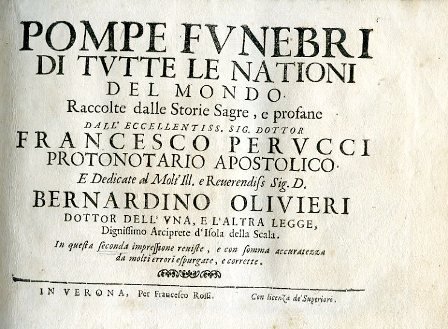Pompe funebri di tutte le nationi del mondo raccolte dalle Storie Sagrem e profane. In questa seconda impressione reviste, e con somma accuratezza da molti errori espurgate, e corrette