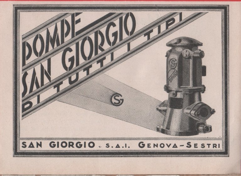 Pompe San Giorgio. Genova Sestri. Advertising 1937