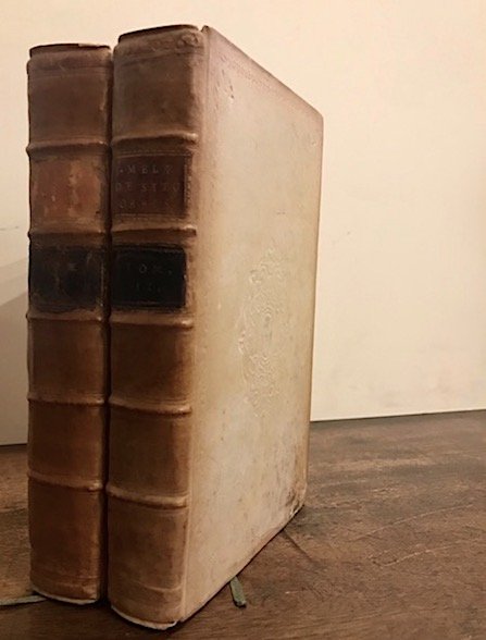 8vo (cm. 20), 2 Voll., 11 cc.nn. (compresa antiporta allegorica e frontespizio stampato in rosso e nero), 545(1) pp. con illustrazioni calcografiche n.t. ed una tavola ripiegata f.t. (’Orbis Terrarum ex mente Pomponii Melae delineatus a P. Bertio’); 1 c.nn., da p. 547 a p. 1081(1), 27 cc.nn. con alcuni diagrammi n.t. Legature coeve in pergamena rigida con nervi e titoli oro su doppio tassello in pelle al ds. (non leggibile il titolo del primo volume). Fregi impressi a secco ai piatti. Tagli colorati. Lievi arrossature sparse, peraltro esemplare in ottimo stato di conservazione. Edizione non comune.