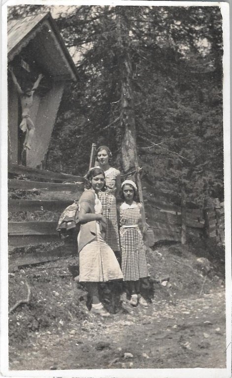 Post card. Ragazze davanti edicola votiva. Non viaggiata