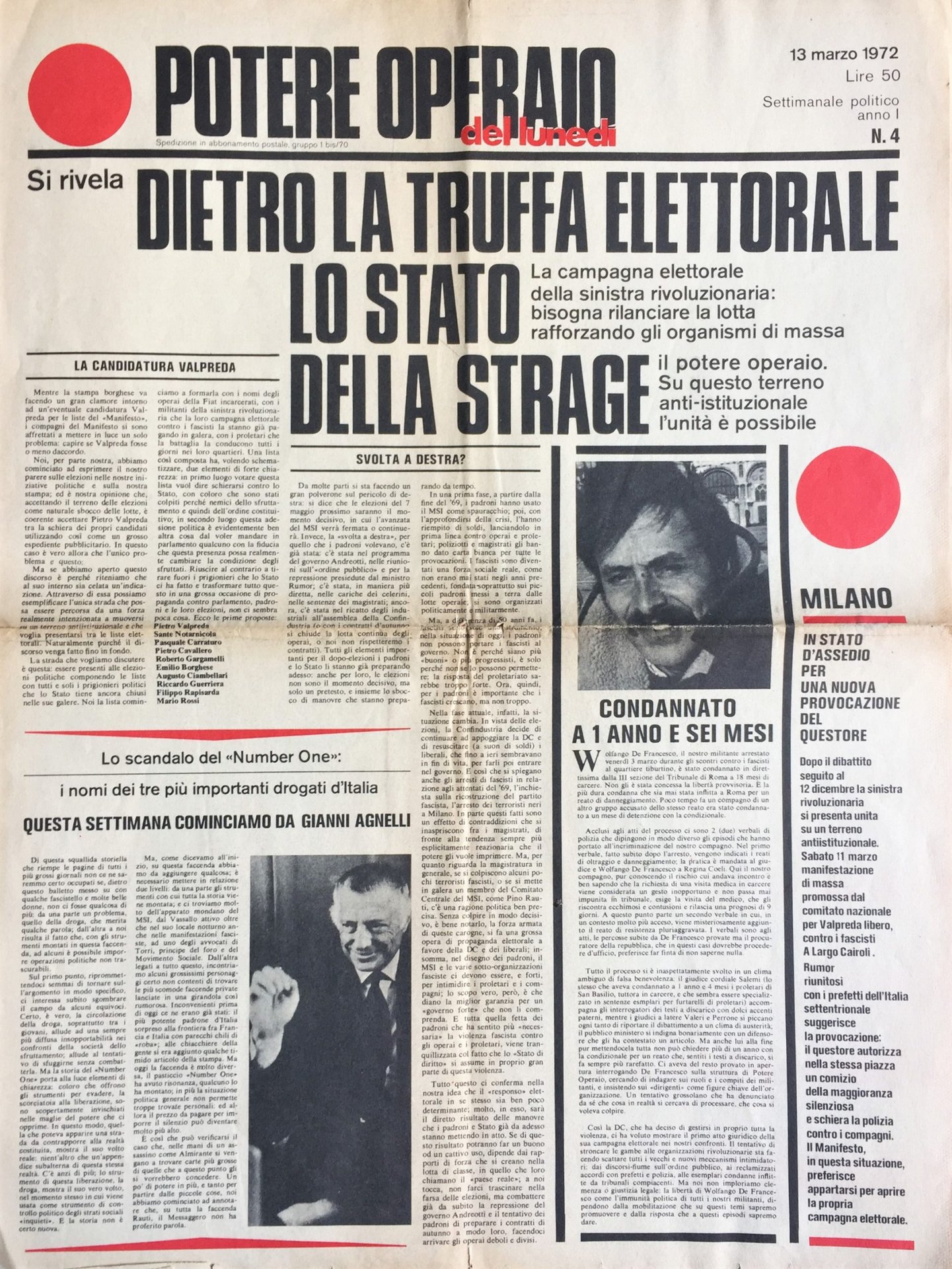 Potere Operaio del Lunedì. Anno I. No. 4. 13 Marzo 1972
