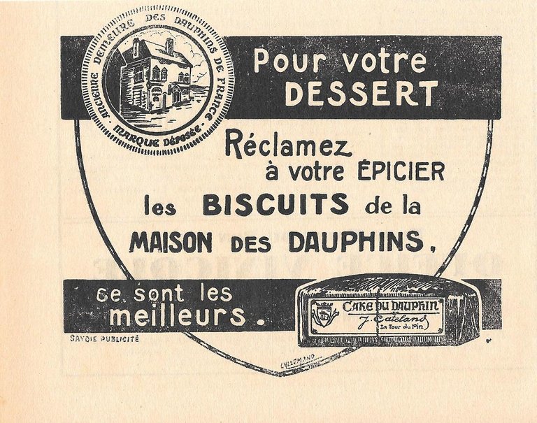 Pour votre dessert biscuit de la Maison des Dauphins. Pubblicita 1932