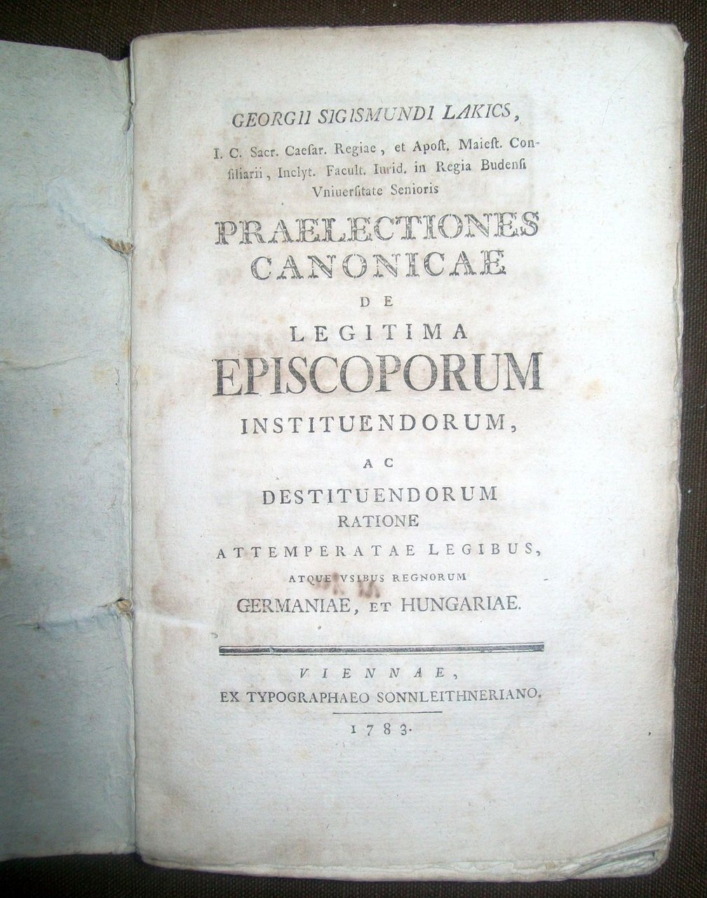 Praelectiones canonicae de legitima episcoporum instituendorum ac destituendorum ratione attemperatae legibus atque usibus regnorum Germaniae et Hungariae.