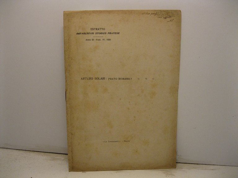Prato romana? Estratto dall'Archivio Storico Pratese, III, fasc. IV, 1920