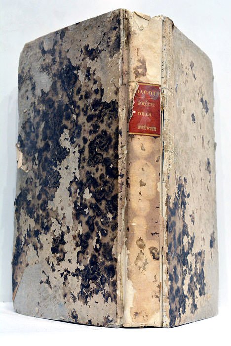 3 ouvrages en 1 volume. 1). 2 feuillets. 210 pages. 1 feuillet. 2). Viij. 69 pages. 1 feuillet blanc. 3). 24 pages. (21,5x13,5 Cm). Cartonnage de l'époque. Charnières fendues. Plats très frottés avec manques importants. Coins et coiffes émoussés. Trois ouvrages par le medecin Dagoumer reliés. Plis et traces de plis. Mouillures claires. Rousseurs.