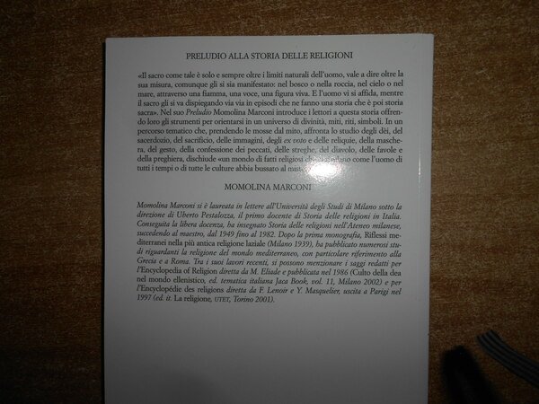 MARCONI, Momolina. Milano, Jaca Book, 2004. Preludio alla storia delle religioni. In-8°, cartoncino edit. ill. 152 pp. Come nuovo. Uff. stanzetta mob. piccolo a destra