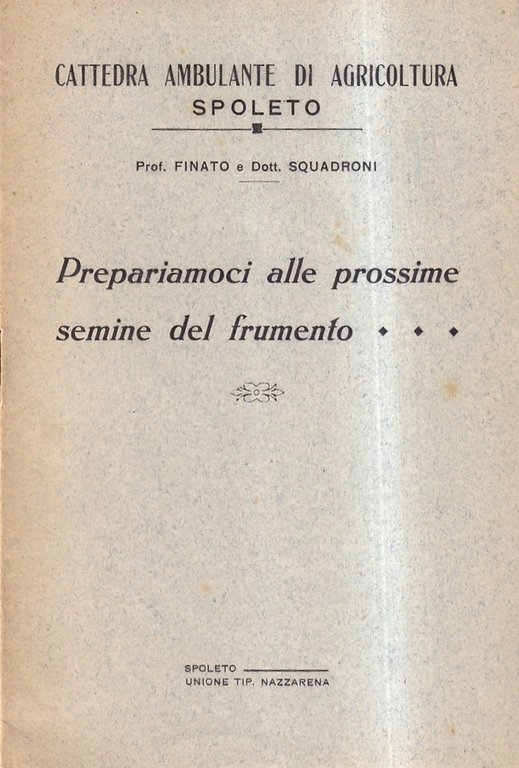 "Cattedra Ambulante di Agricoltura di Spoleto" - Opuscolo spillato di 12 pagine, senza data ma dopo 1923. Esemplare in ottime condizioni complessive.