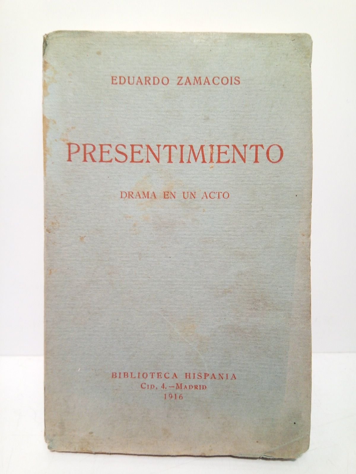 [PRIMERA EDICION].- Madrid: Biblioteca Hispania, 1916.- 165 p., [1 h.]; 8º (18,2 x 11,7 cm); Cartulina Ed.* Las cubiertas con algunas manchas de óxido. Por lo demás en perfecto estado. TEATRO Y CINE IBEROAMERICANOS