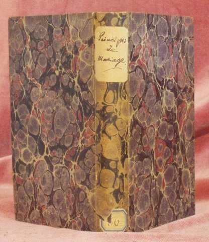 - Papier marbré, tranches jaspées, reliure de l’époque.
