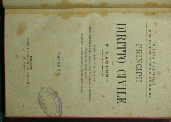 Prima traduzione italiana. Seconda edizione diligentemente riveduta e migliorata con raffronti ed appendici concernenti la legislazione e la giurisprudenza italiana - Collana Collana Filangieri di scienze politiche e giuridiche - in 8° - pp.XXXIX + 535 - Mezza pelle con titolo e fregi in oro al dorso nervato - Tagli rossi - Timbro al frontespizio