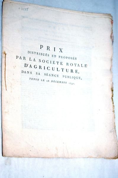 PRIX distribués et proposés par la Société Royale d'Agriculture, dans sa séance publique, tenue le 28 decembre 1791.