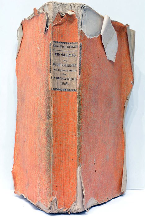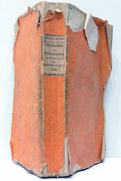 5 feuillets. 399 pages. (21x13 Cm). Broché. Étiquette de titre et auteurs collé au dos. Manques de papier sur les plats. Déchirure sur le 1er plat. Plis et traces de plis. Premier cahier partiellement derelié. Accrocs, taches et rousseurs. Mouillures sur quelques pages. Un grand nombre de problèmes et de théorèmes mathématiques réunis, jusqu' alors jamais recueillies, résultat d'une coopération entre Reynaud et Duhamel.