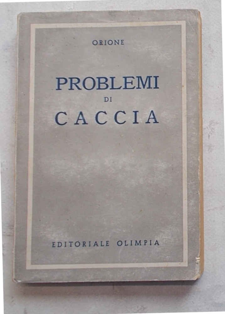 In 16° (cm. 18,5 x 12,5); pagg. 278; leggera cartonatura origin. VG. ** Ottimo esemplare. Edizione originale. Cfr. Ceresoli, 392: "Raccola di articoli di indole venatoria pubblicati nel settimanale milanese 'Gazzetta di Caccia e Pesca'".