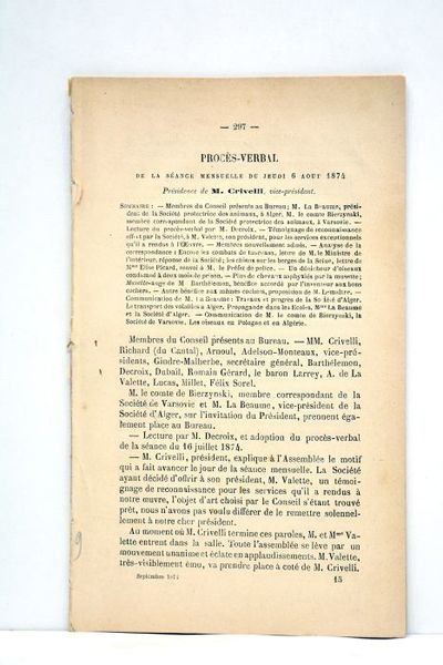 Procès-verbal de la Séance mensuelle du jeudi 6 aout 1874.