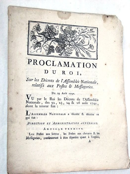 PROCLAMATION du Roi, sur les décrets de l'Assemblée Nationale, relatifs aux Postes et aux Messageries.