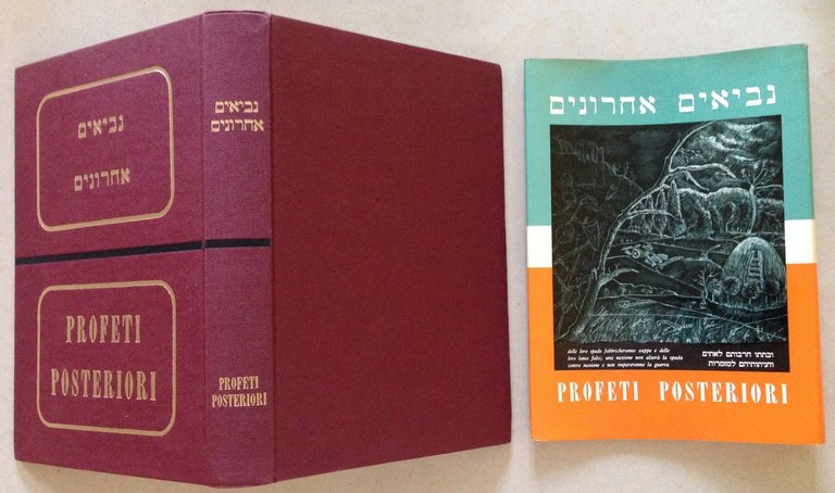 A.A. V.V, Profeti posteriori Stab. Grafico Marietti, Torino, 1964; cm. 25x17,5; pp. 375; testo ebraico a fronte; con 15 tavv. a col. f.t. e a piena pag.; cartonato editoriale rilegato con titoli al dorso, con sovracoperta editoriale ill. a col. Condizioni di conservazione Volume ben conservato con leggere tracce d'uso e del tempo; leggere abrasioni alle tavole per vecchia umidità. SETT55.L18251 MT