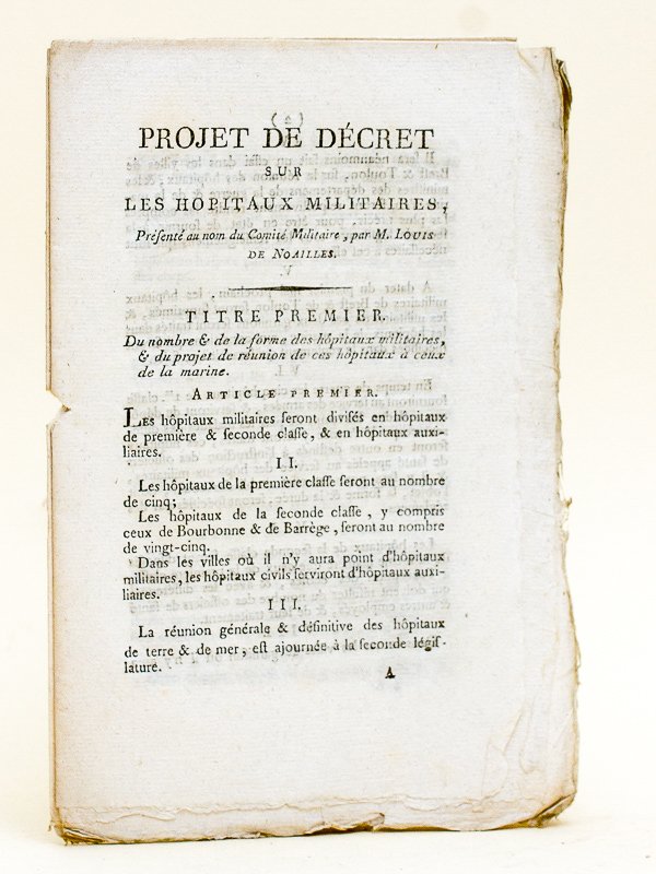 Projet de décret sur les hôpitaux militaires, présenté au nom du Comité Militaire, par M. Louis de Noailles.