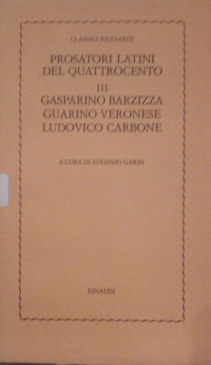 PROSATORI LATINI DEL QUATTROCENTO - VOL. III - GASPARINO BARZIZZA, GUARINO VERONESE, LUDOVICO CARBONE