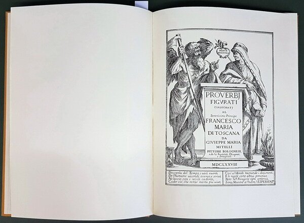 Vol. in -folio (26,5 x 37 cm.), legatura editoriale telata col. ocra con titoli in bianco al dorso (manca la sopracopertina, pp. XVIII, (1), 50 tav. in nero raffiguranti incisioni di Mitelli, (4). In buone condizioni.