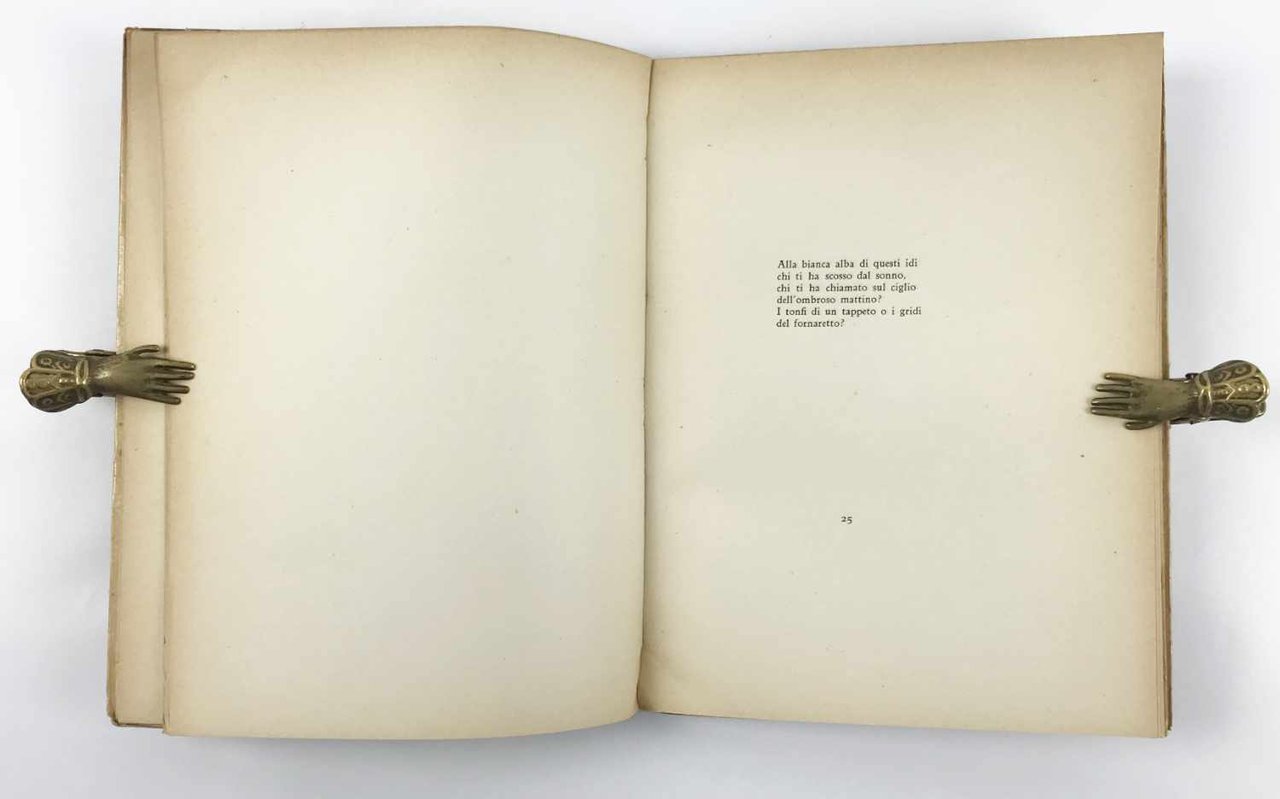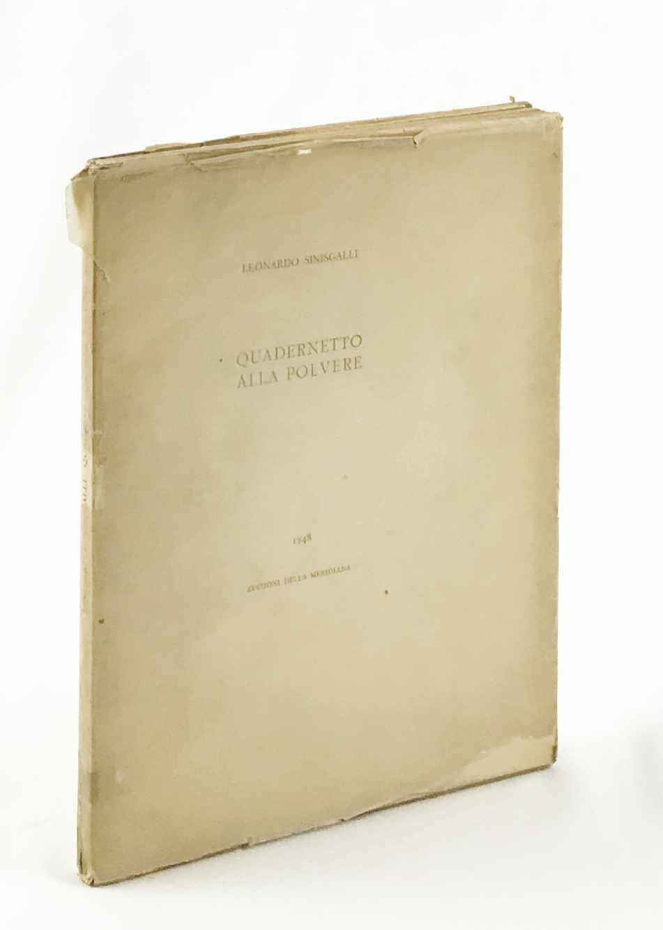 LIBRO Edizione originale, tiratura su carta grande. Esemplare senza numero ma appartenente ai soli 50 stampati su carta grande; in più che buone condizioni e a fogli chiusi, con segni del tempo perimetrali alla copertina e mancanze al pergamino protettivo semitrasparente originale. Secondo le consuetudini delle edizioni della Meridiana, oltre alla tiratura nel formato tascabile (850 copie con una serie di testa su carta più bella) del «Quadernetto» furono tirate sole 50 copie numerate in numeri romani, «su carta uso mano pesante», oggi rarissime.