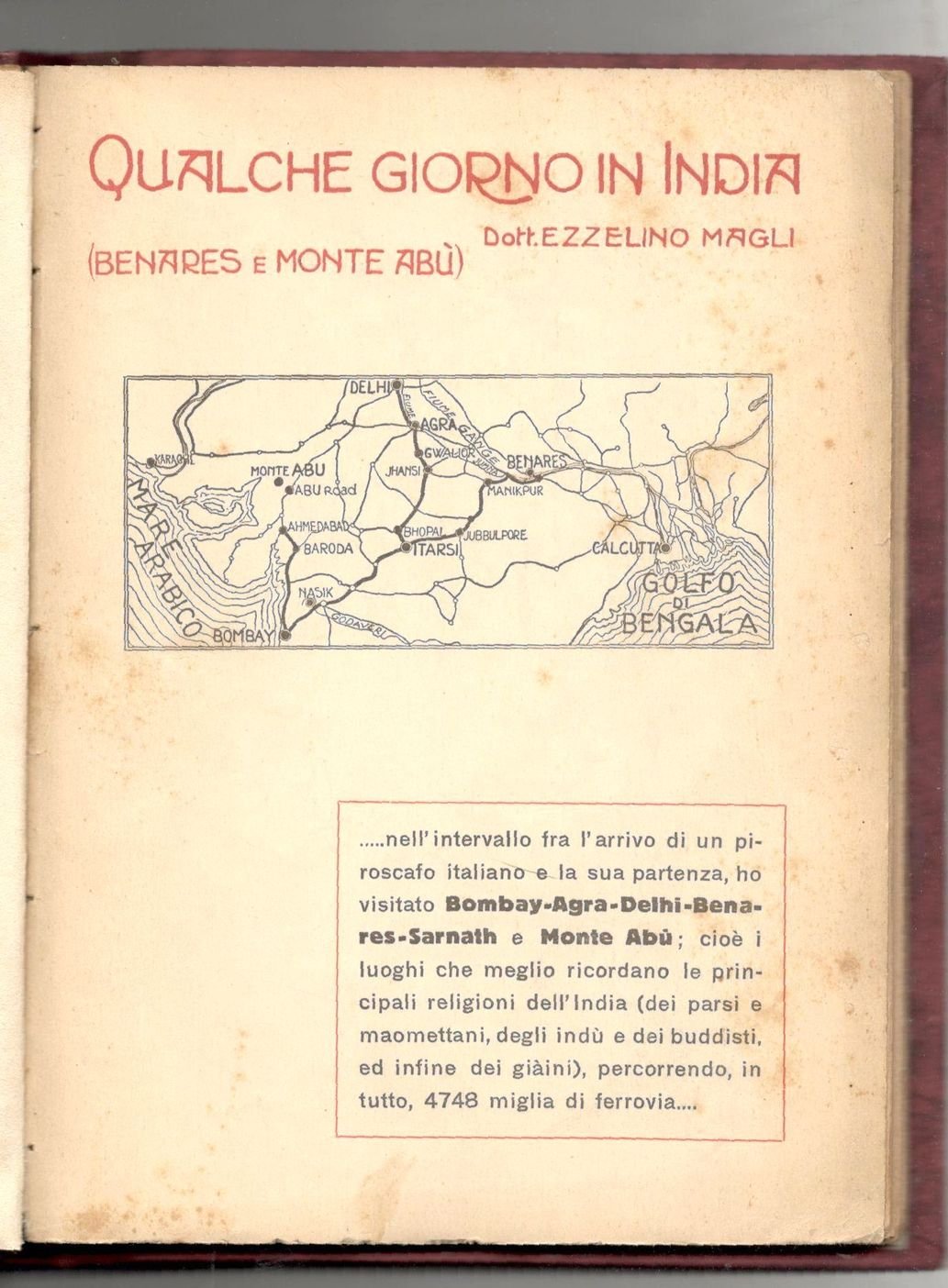 In 8°, pp. 131, (3). Mezza tela rossa con dorso muto. Primo piatto della brossura conservato. Con numerose illustrazioni. Dedica autografa dell'autore.