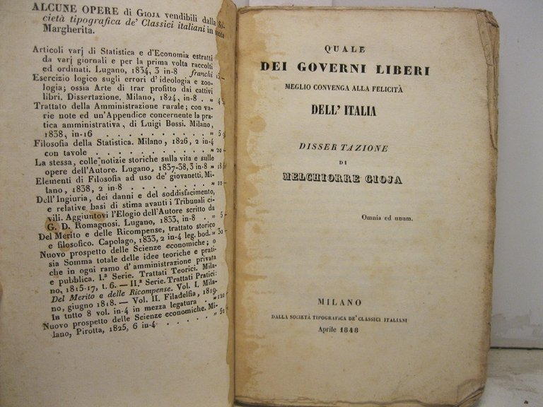 Quale dei governi liberi meglio convenga alla felicita' dell'Italia. Dissertazione.