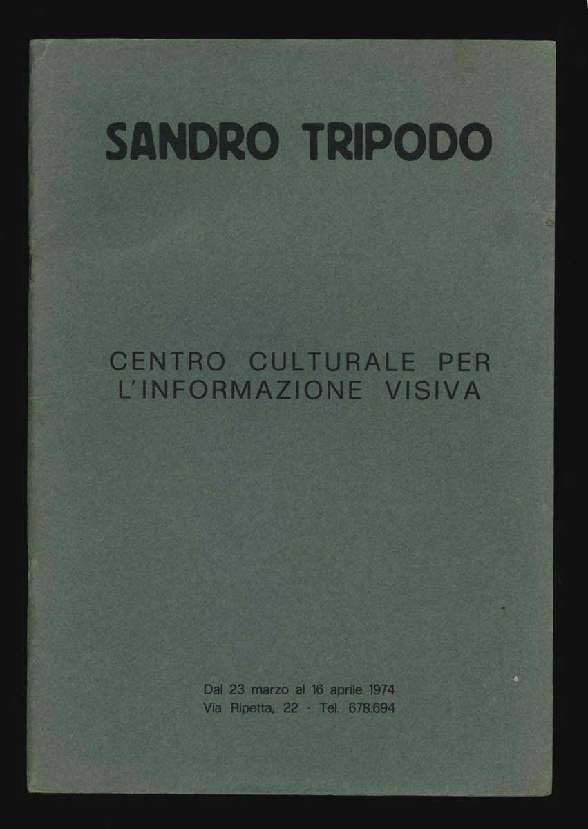 LIBROPrima edizione.Ottimo esemplare.Catalogo della mostra tenutasi in via Ripetta a Roma dal 23 marzo al 16 aprile 1974. Inaugurazione e dibattito ore 9. Manoscritto riprodotto del testo di Villa, 6 illustrazioni in b.n. di opere di Tripodo.