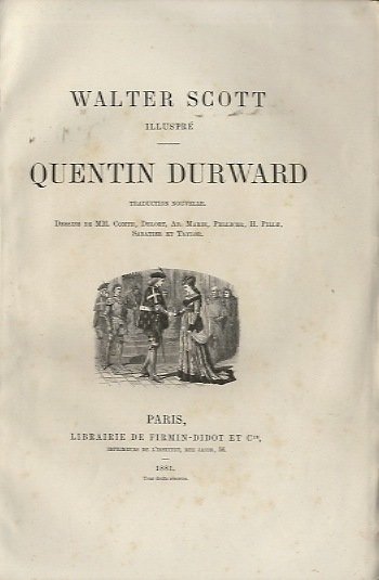 576 p., 27 cm, bross. Condizioni : USATO - Stato : Coperta molto danneggiata, con diversi strappi e mancanze sul piatto anteriore (due abbastanza gravi) e al dorso. Taglio alla cerniera anteriore. Prima pagina di guardia quasi sciolta. Pagine parecchio usurate ai tagli. Altre note : Romanzo storico di Walter Scott, pubblicato per la prima volta (in tre volumi) nel 1823, con protagonista la figura inventata dell'arciere scozzese Quentin Durward. Il romanzo, basato su fatti storici realmente avvenuti (l'assedio di Liegi e l'assassinio del vescovo Luigi di Borbone, avvenuto nel 1482 ma anticipato di qualche anno per esigenze narrative), doveva rappresentare secondo l'autore la lotta tra il sistema del feudalesimo, ormai declinante, e il sorgere delle moderne monarchie nazionali, simboleggiate dal re di Francia Luigi XI. Testo in lingua francese. Coperta grigia senza scritte, nemmeno sul dorso. La prima immagine è relativa al frontespizio.