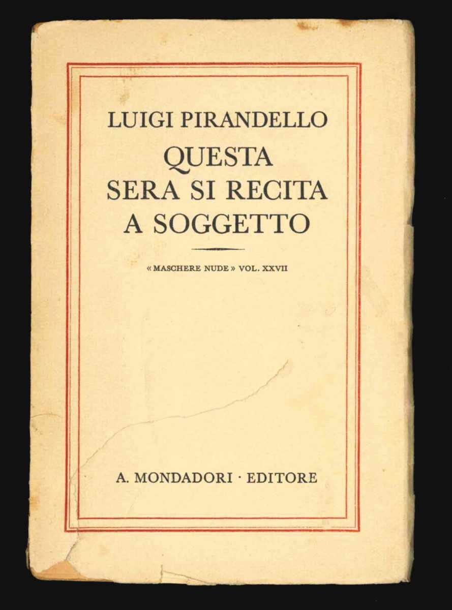 LIBROPrima edizione.Più che buon esemplare (lacerazione ricomposta al piatto anteriore, minime mancanze perimetrali alla brossura, leggera brunitura uniforme alle carte, qualche fioritura).Una delle più celebri opere teatrali di Pirandello, da considerarsi come terza parte della trilogia metateatrale preceduta da «Sei personaggi in cerca d’autore» e «Ciascuno a suo modo». Messo in scena per la prima volta al Teatro di Torino il 14 aprile 1930, il testo venne pubblicato da Mondadori nel febbraio dello stesso anno come ventisettesimo volume delle «Maschere Nude».Bib.: Lo Vecchio Musti, Bibliografia di Pirandello p. 84